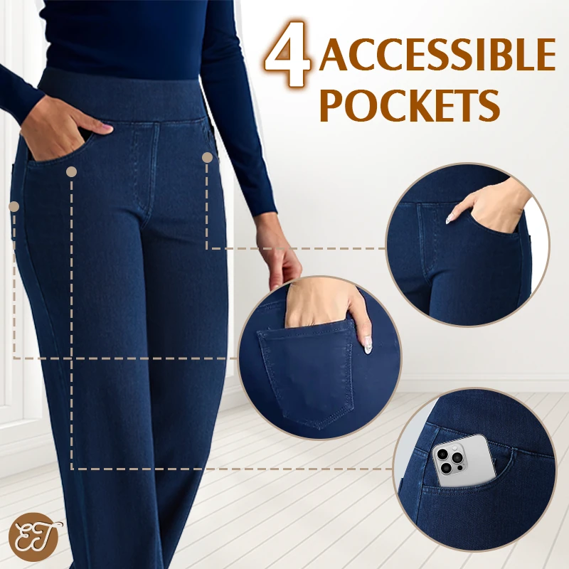 EaseTrousers - High Waisted Multi-Pocket Straight Leg Stretchy Pants