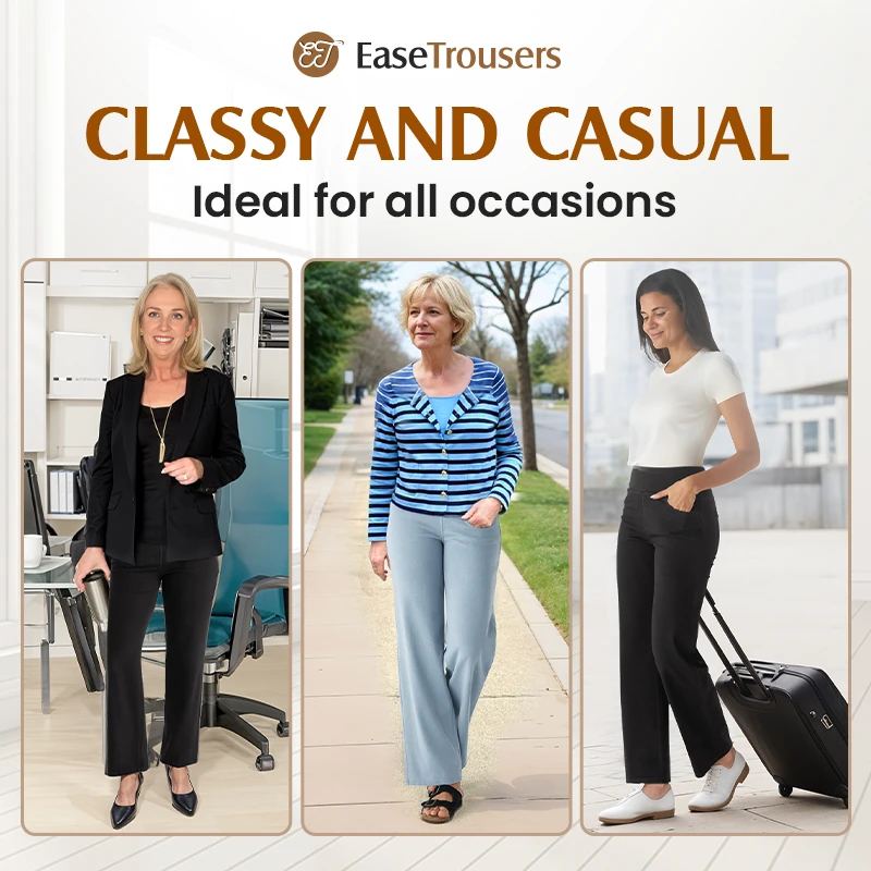 Elevate your wardrobe with EaseTrousers - with a super elastic waistband that makes dressing up a breeze, and stretchy fabric in a straight-leg fit that exudes confidence and elegance.