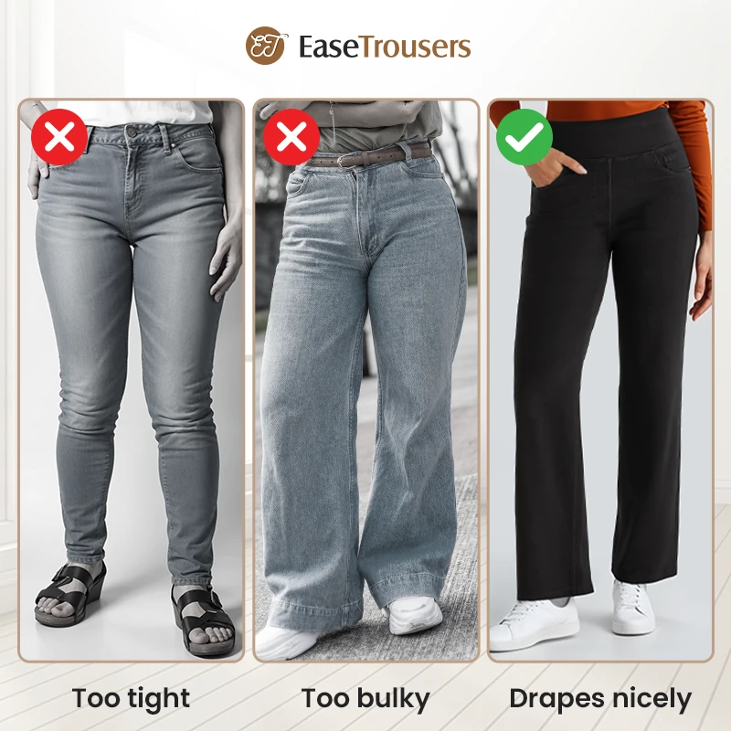 Say goodbye to bulky and tight pants. Enjoy an elongated silhouette and perfect smooth drape for a streamlined tailored look with EaseTrousers.